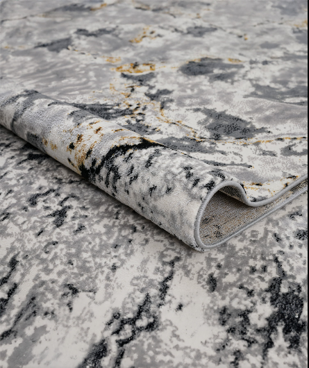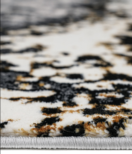 Esta alfombra turca tiene un diseño abstracto en tonos negros, dorados y blancos exclusivo, con medidas de 1.40x2.00 . Proporciona un toque elegante y moderno a cualquier espacio, además de ser duradera y de alta calidad. Perfecta para añadir estilo y calidez a tu hogar.